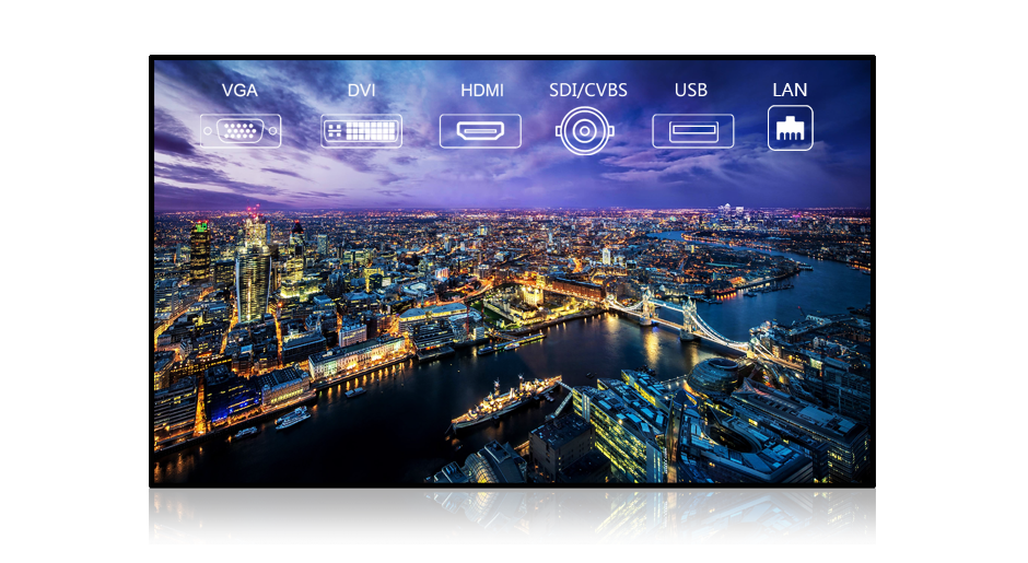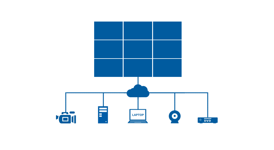 分布式云拼接屏支持IP、HDMI、DVI、VGA、YPbPr、CVBS、USB等多種信號,并在任意一個單元顯示。