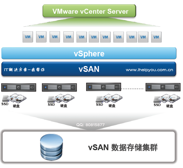 VMware vSAN 是一個分布式的軟件層, 包括在 ESXi 管理程序中, 它與 VMware vSphere 完全集成在一起。vSAN 集群需要共享存儲的 vCenter 功能,如高可用性 (HA)、vMotion 和 動態資源平衡 (DRS)。VM 存儲策略使您能夠定義虛擬機存儲要求和功能。